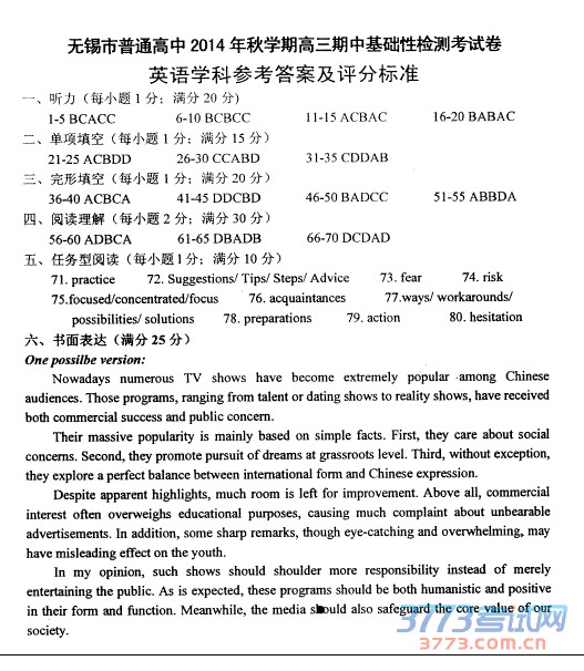 2.用约120个英语单词就各类“秀”节目谈谈你的看法,内容包括: