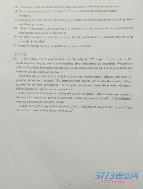 3773考试网2016高考高考英语正文