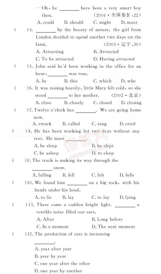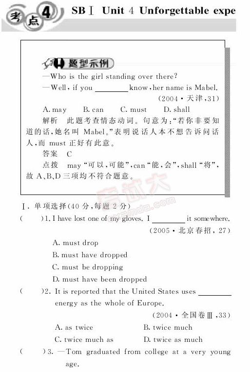 金版1+1:2007年高考英语双测题解考点(四)