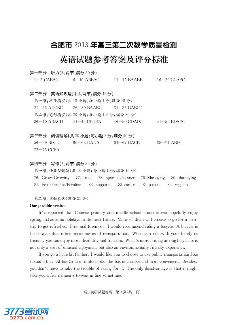 英语试题请进入合肥模考频道查看:/gaokao/Special/hfmk/