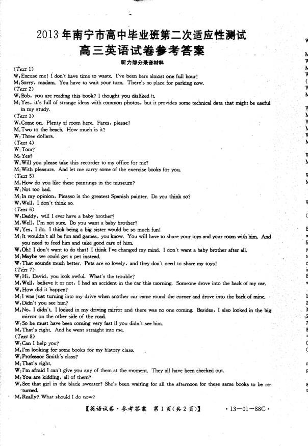 广西省南宁市2013届高三毕业班第二次适应性测试