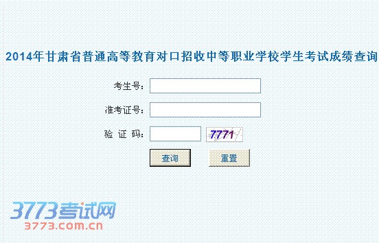 根据甘肃省招委会考务管理工作规定,经省教育厅批准,2014年甘肃省普通高等教育对口招收中等职业学校学生考试(三校生考试)成绩定于2014年6月16日(星期一),在甘肃职业教育信息网(