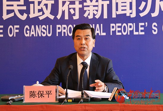 甘肃省委外宣办副主任杨小平主持新闻发布会。本网实习记者 董子瑗摄