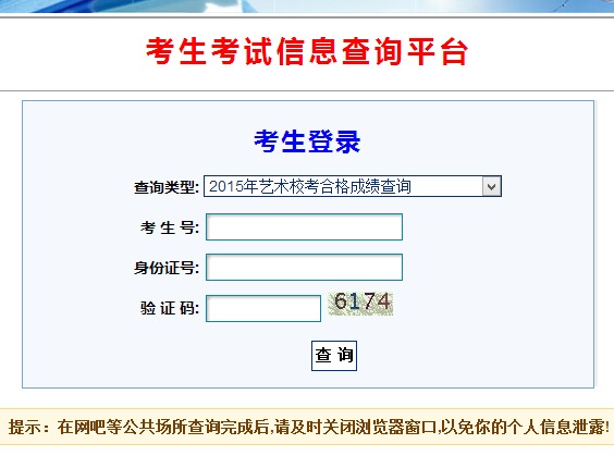 提示:在网吧等公共场所查询完成后,请及时关闭浏览器窗口,以免你的个人信息泄露!