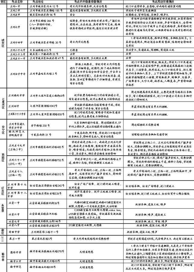 兰州市2015年高考考点周边环境情况调查表