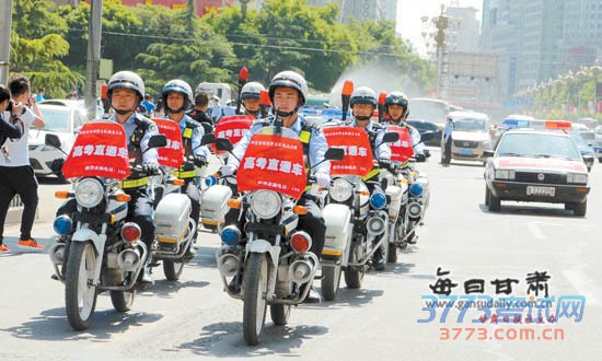 4日,兰州城关交警大队在南关什字举行“高考直通车”发车仪式。本报首席记者裴强摄