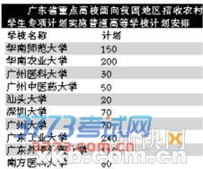 新快报讯 广东省教育考试院4日公布消息,将在省属的华师、华农等一本院校安排1000个招生计划专门面向贫困地区招收农村学生。教育界人士分析认为,虽然招生计划只有1000个,但贫困地区考生读一本的机会将大大增加。