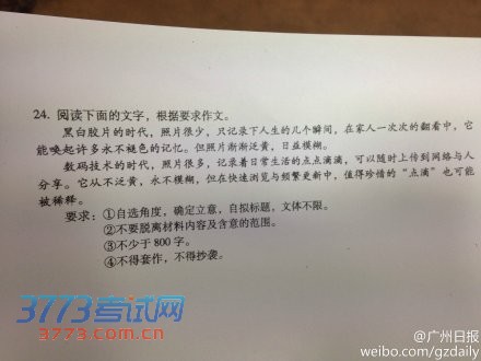[组图]影星钟汉良发微博压中2014广东高考作文?