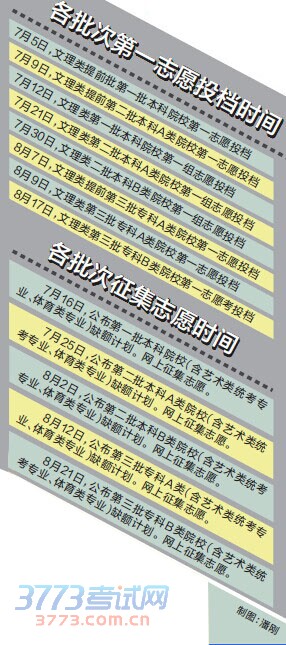 羊城晚报记者 林世宁日前,广东省教育考试院在其网站上公布了《广东省2014年普通高校录取工作日程表》,根据安排,今年广东省高考录取工作将于7月5日正式开始,至8月24日结束,各批次录取结果将于7月5日开始陆续公布,其中一本录取结果预计12日公布。