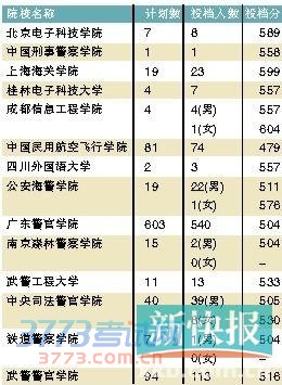 不过,投档情况最不理想的,当属铁道警察学院,文科计划招生8人,无论男女均没有考生投档,理科计划招收7人,仅一名男生投档,女生零投档。此外,文科招生中,还有公安海警学院和中央司法警官学院未满档,而理科招生中,中国民用航空飞行学院和广东警官学院也未满档。