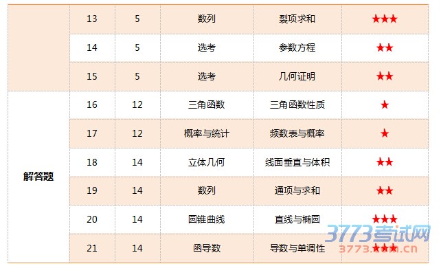 2. 数列、解析几何与函导数这三大模块考试比重有所增加,每个模块都多考一道小题,考点越来越集中;