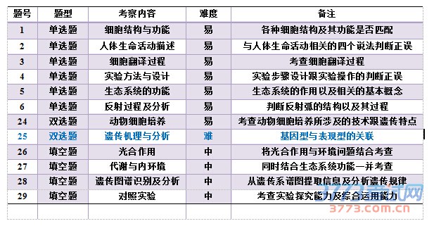 由这次2015广州一模生物单科的数据统计看来,各位亲们还是明显感觉到必修一跟三所占的比重跟以往一样超过总分的一半,但是考查的知识点比以往都更加细致,这也说明出题老师更希望各位能够关注细节掌握的深入程度。如27题细胞内环境中的体液调节过程,要求各位亲写出小鼠体内血糖含量过高直至恢复正常水平的体液调节流程,用文字以及箭头描述,这样的题目形式能够更加检验各位掌握整个调节过程的理解程度。这次还有一些题目,用比较少考查的形式出现,如28题遗传图谱中的凝胶电泳分离显示带谱,让考生看图来提取遗传信息,若尚未做过类似形式题目的同学,需要更加关注以及总结。