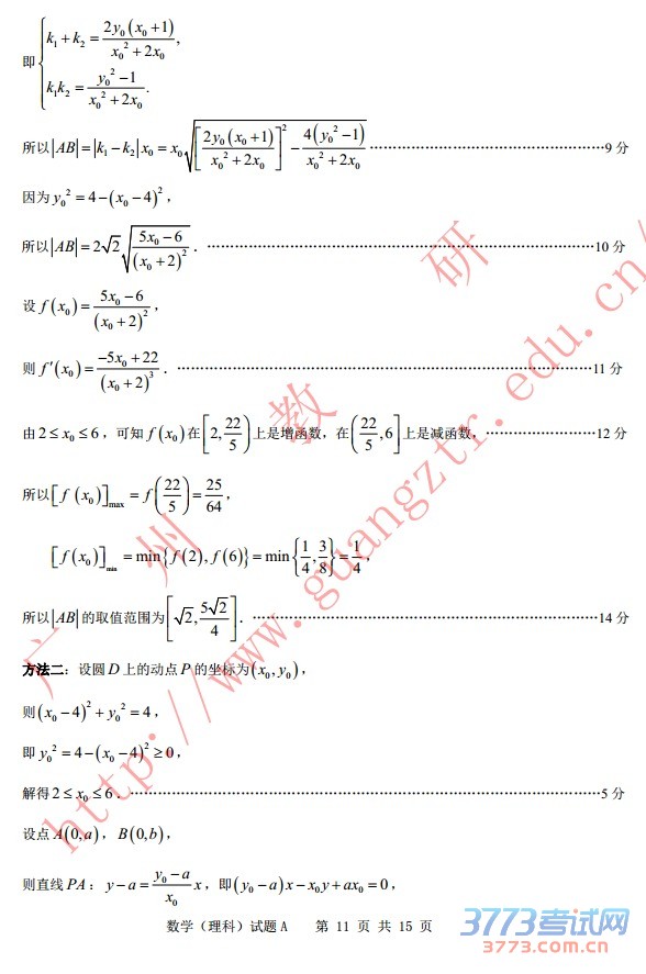 [组图]2015广州二模二测数学理科试题答案