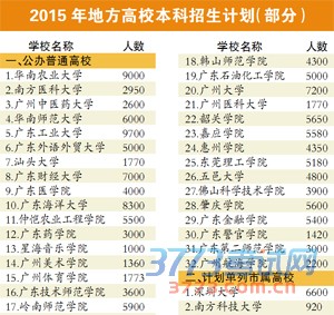 广东2015年社会发展计划出炉 今年地方普通高校本科招生计划公布