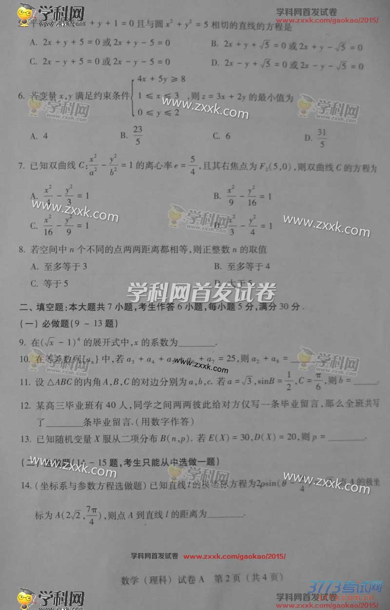 2015年广东数学理科高考试题及答案(图片)