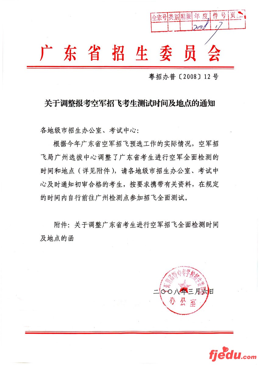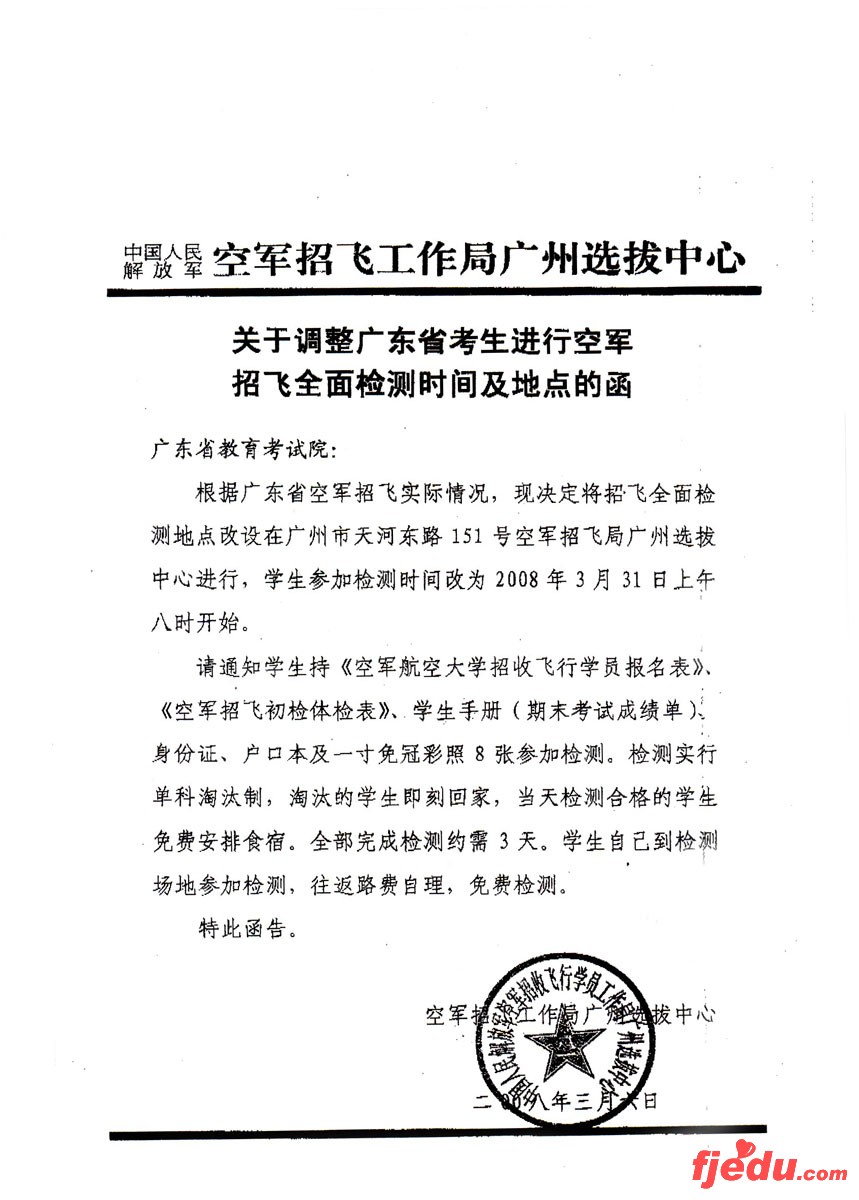 [组图]广东省关于调整报考空军招飞考生测试时间及地点的通知
