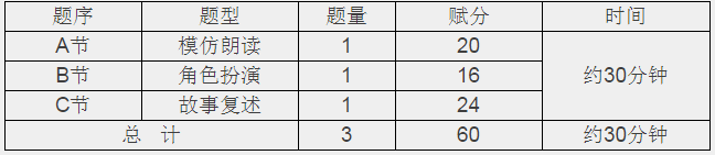英语科听说考试的时间约30分钟。采用计算机辅助考试,试卷满分60分。评卷采用人工评卷和计算机评卷相结合的方式。