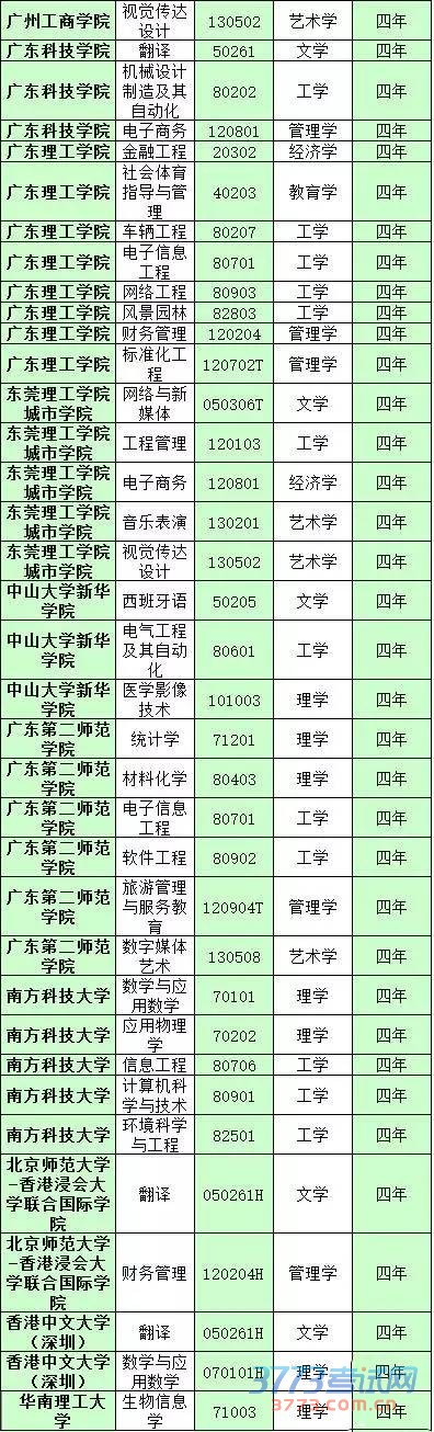 日前,教育部公布了2015年度普通高等学校本科专业备案或审批结果,其中对各地高校申请备案的专业予以了备案,同时确定了审批同意设置的国家控制布点专业及尚未列入目录的新专业名单。记者了解到,广东共有51所高校将新增180个专业,其中在新增备案的本科专业名单中,共有48所高校新增165个专业;此外,在新增审批专业名单中,包括广州医科大学在内的11所广东高校(8所高校与备案专业名单一致)共有15个专业获批,而儿科学、健康服务与管理专业还成为未被列入目录中的新专业。