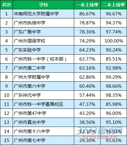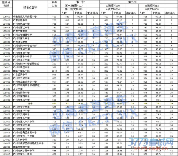 2016广州一模理科上线率排名