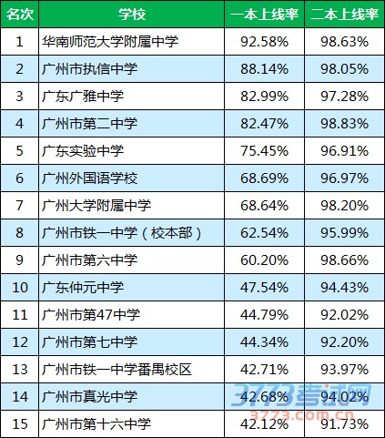 附上一份2015年广州市四十所示范高中的高考上线率,参考一下: