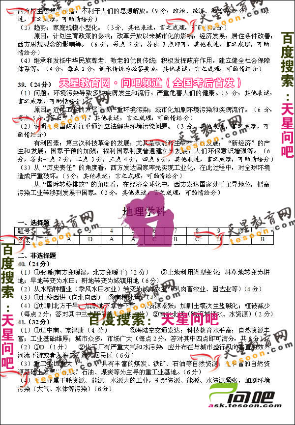 [组图]2010年广州一模文综试题答案