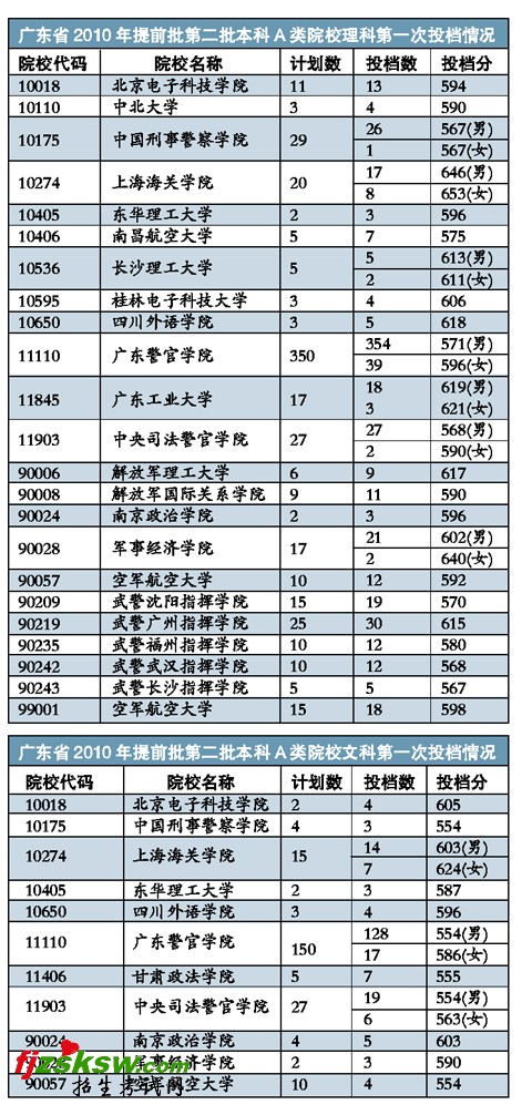 [图文]2010年广东省高考提前批二本A类投档分数线