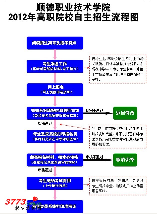 我校收到考生提交的纸质报名材料后,与网上报名信息进行核对并验证材料真伪,材料齐全无误且符合报考资格则正式报名审核通过,考生可到银行缴纳报考费用。 |
