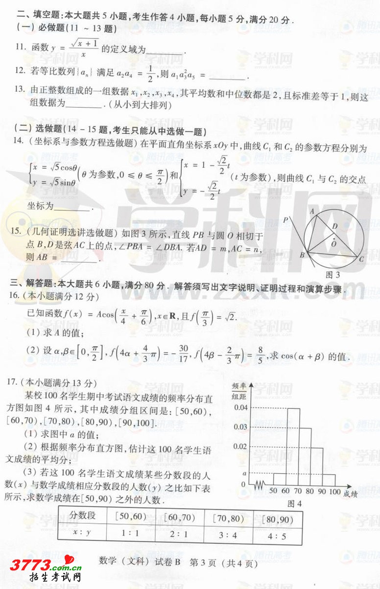 [组图]2012广东高考文科数学B卷试题答案