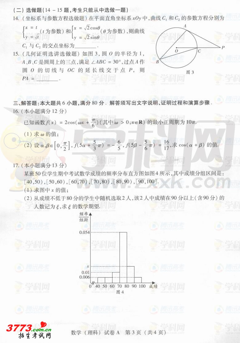 [组图]2012年广东高考理科数学A卷试题答案