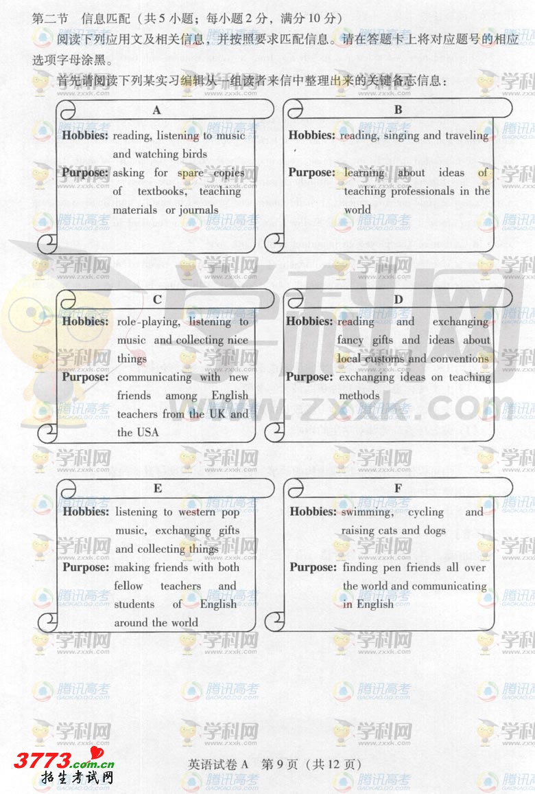 [组图]2012年广东高考英语A卷试题发布