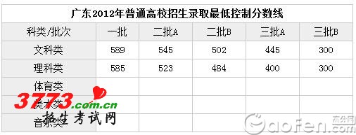 【据南方日报消息】2012年广东高考分数线公布(理工类):一本:理585。二A:理523。二b:理484。三A:理400分。三B:理300。高职:220。