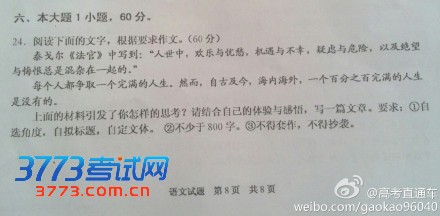 肇庆市2013年高三语文一模考试详细试题还没公布,我们先来看看作文题目:
