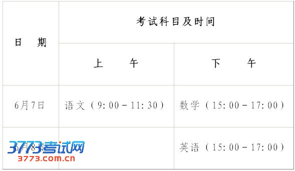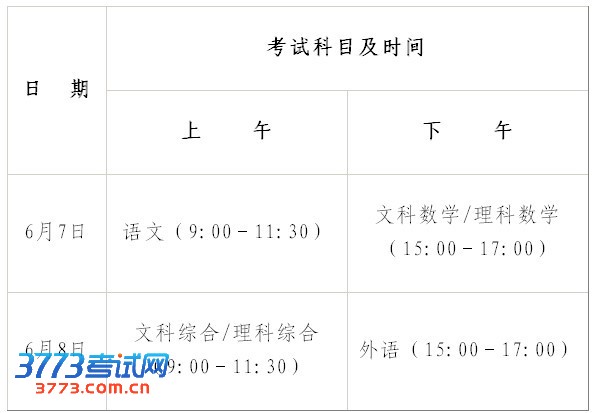 一、2013年普通高等学校招生统一考试各科目考试时间安排: