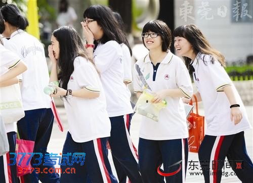 ■昨日早上8时许,东莞中学高考考场,考生轻松上阵开心赴考。(记者 郑志波 摄)