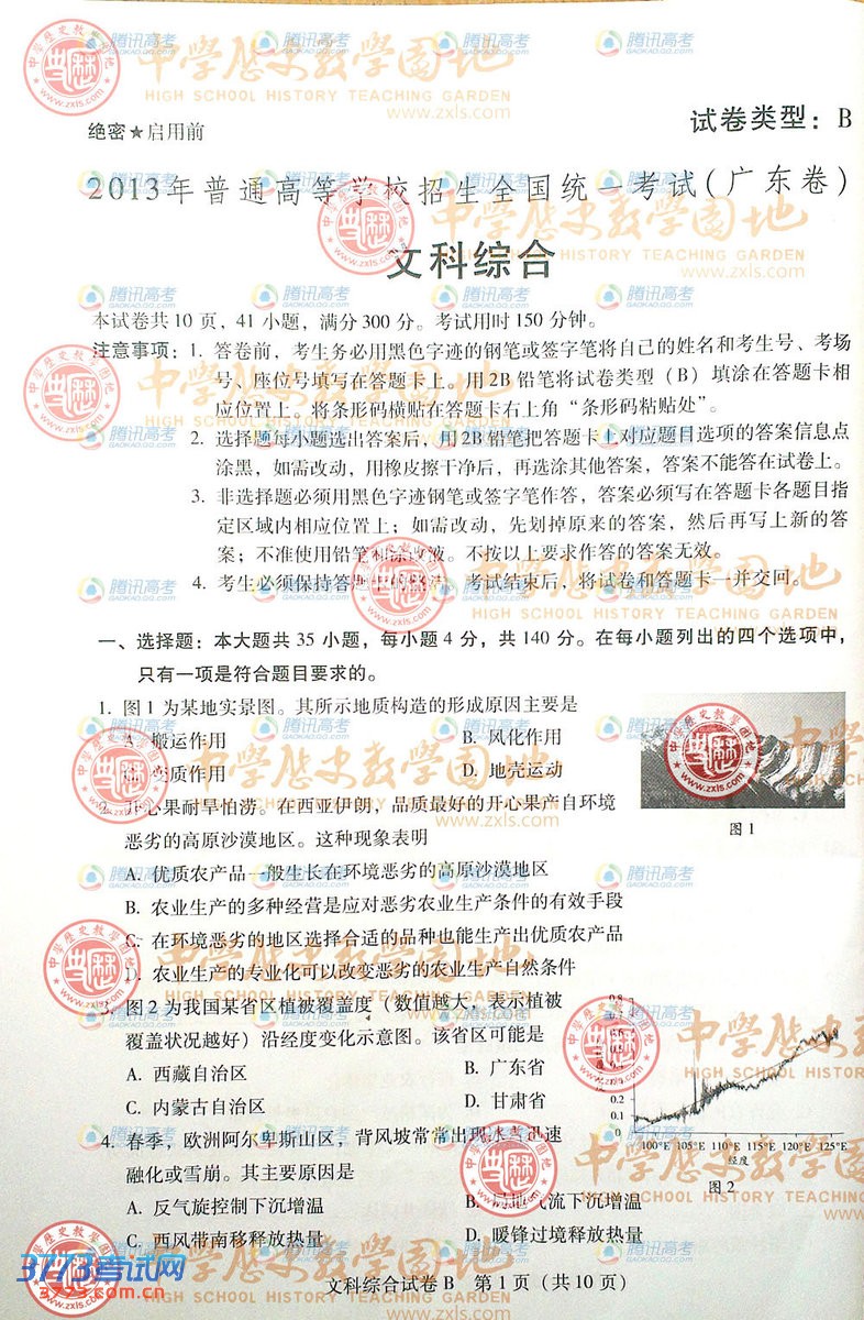 [组图]2013广东高考文综B卷试题(答案请关注)