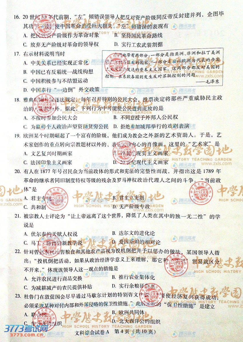 [组图]2013广东高考文综B卷试题(答案请关注)