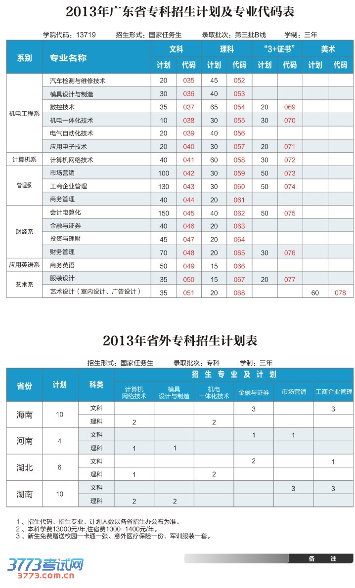 [图文]广东科技学院2013年广东专科招生计划
