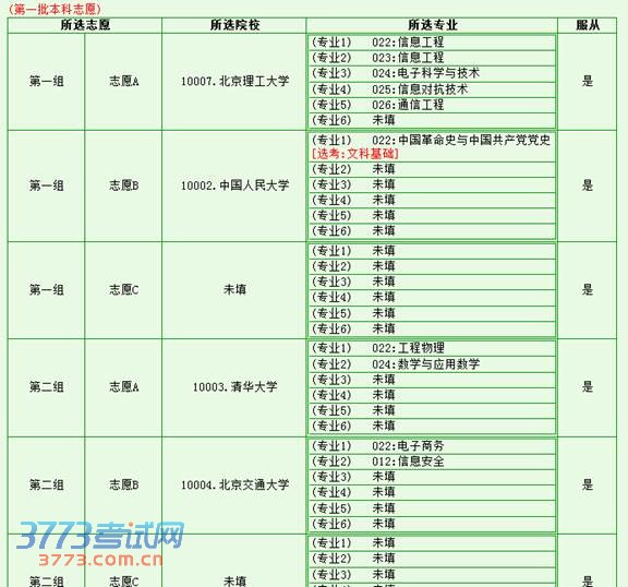 2、查询所报志愿:考生可以浏览其所有批次的详细志愿信息。