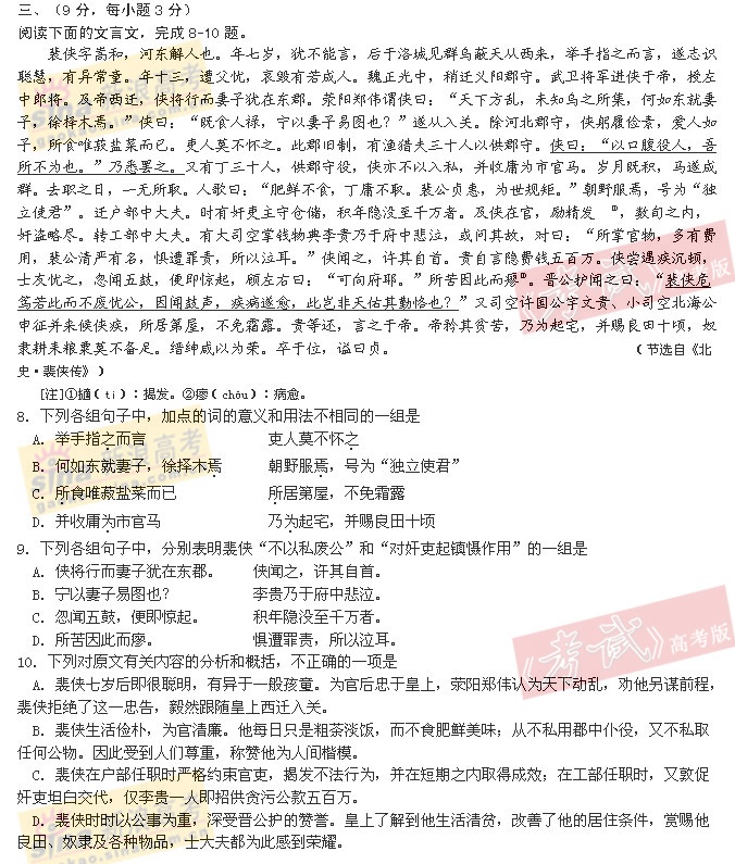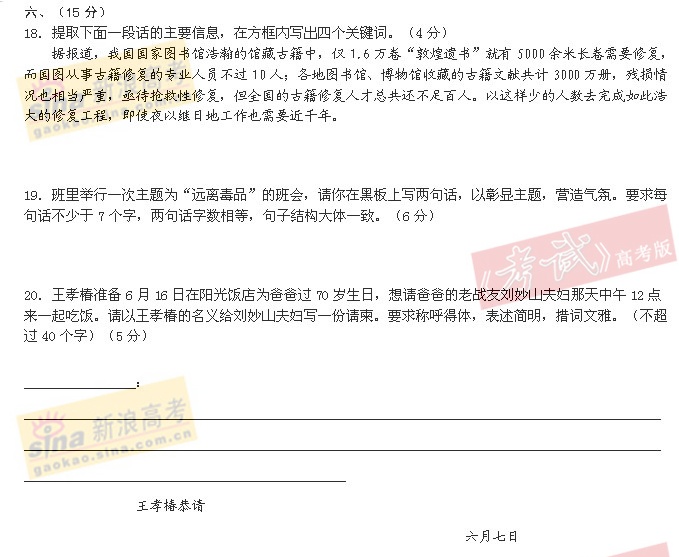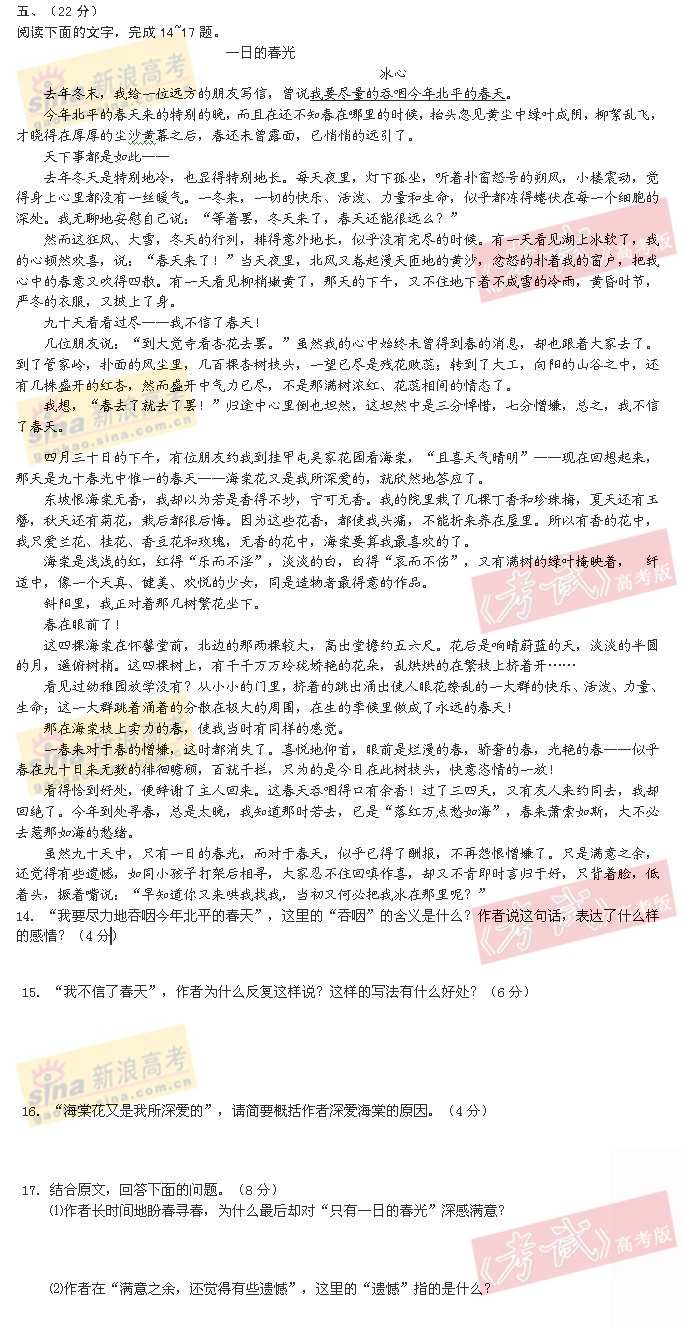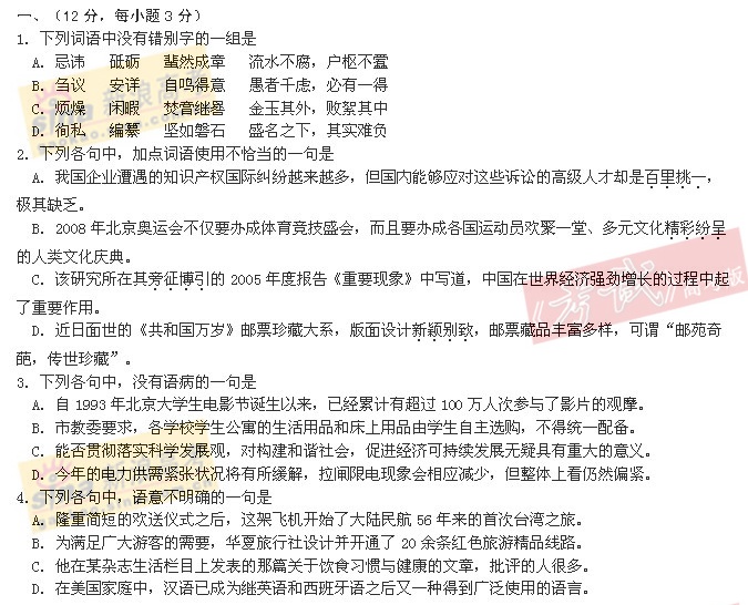 [组图]2005年高考语文试题(全国卷I)