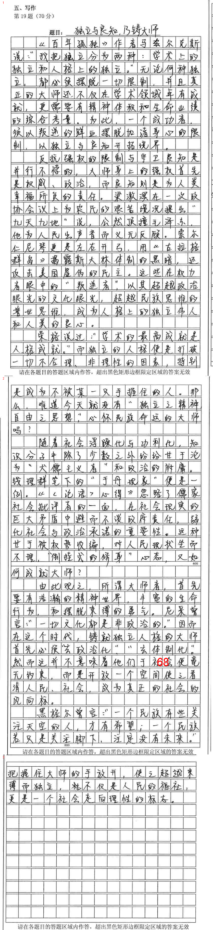 [图文]2013厦门市质检满分作文:独立与良知乃铸大师