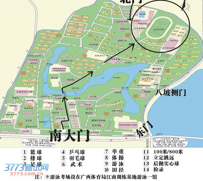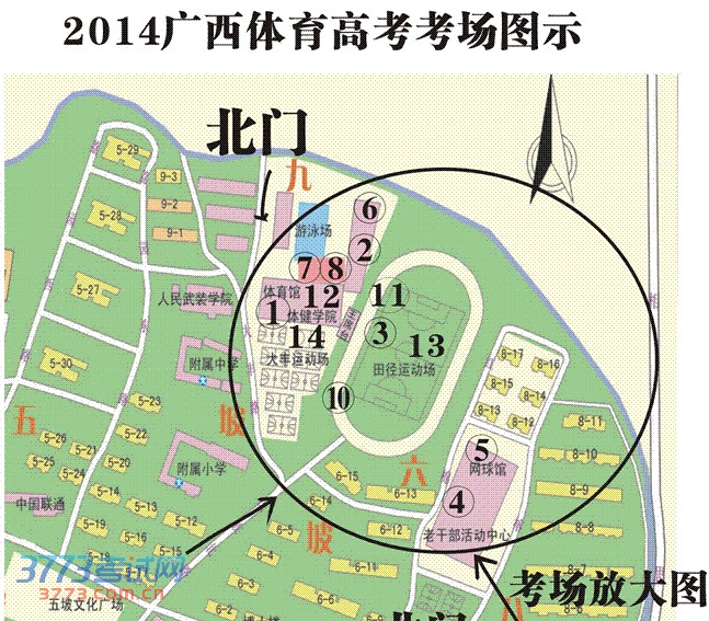 (附: 2014 年广西体育高考广西民族大学考场示意图)