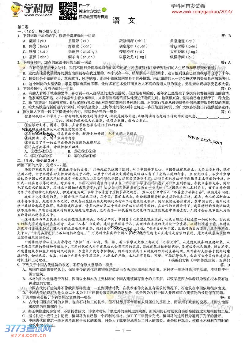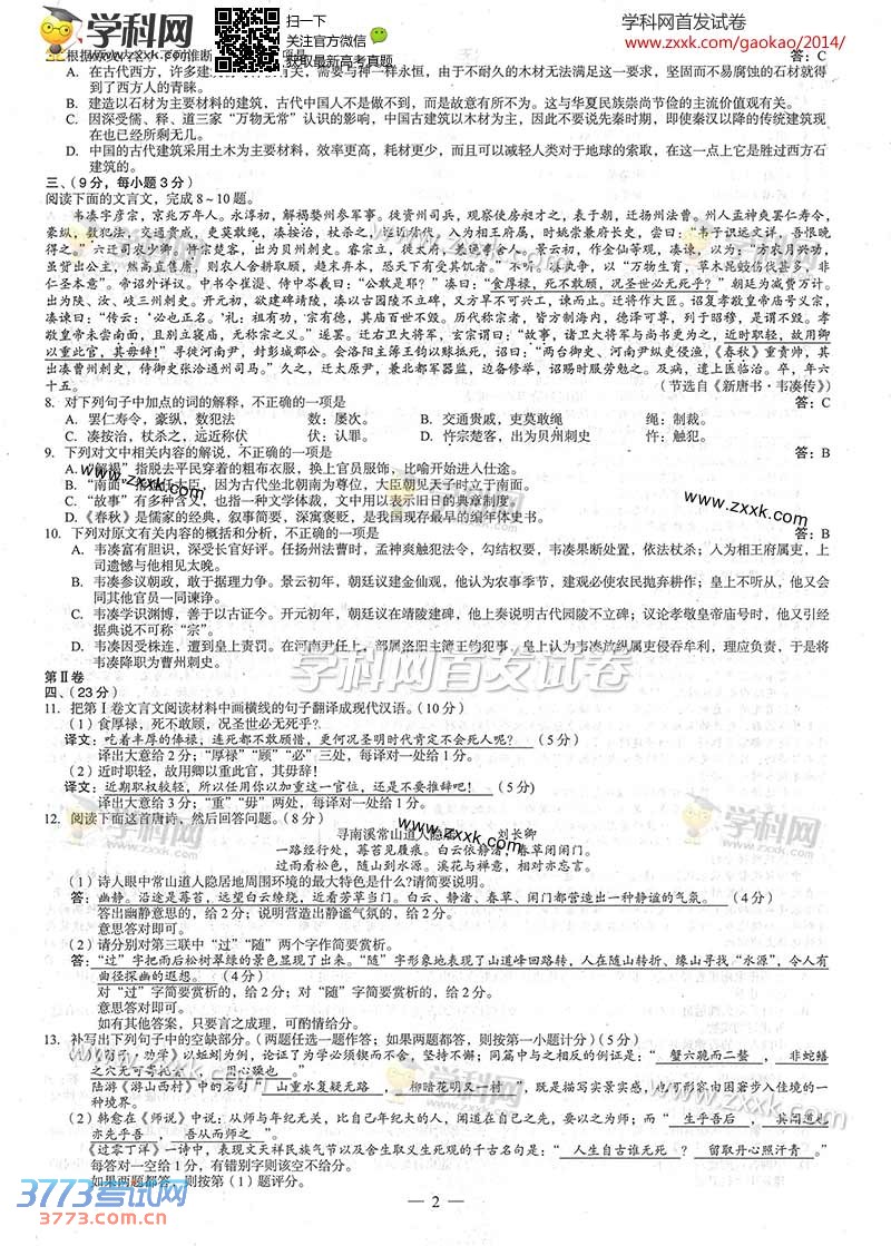 [组图]2014广西高考语文试题及答案