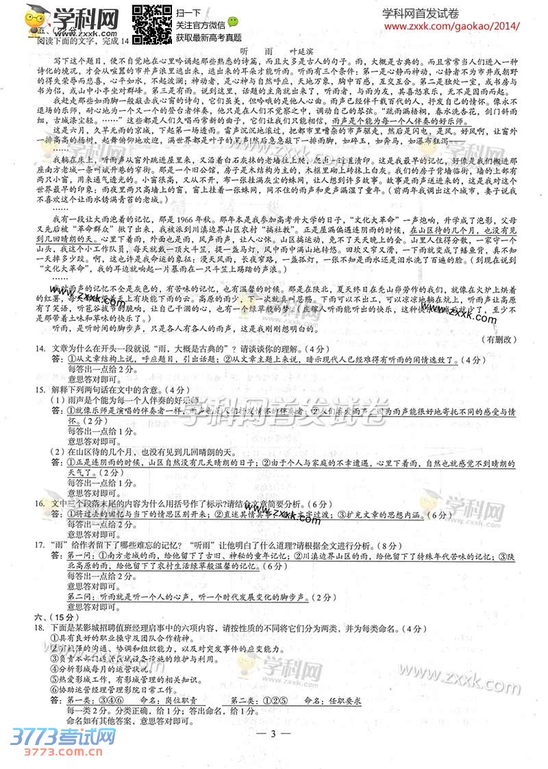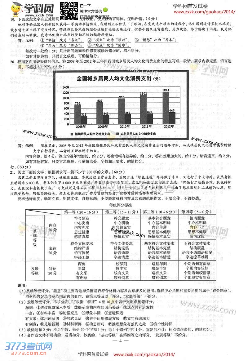 [组图]2014广西高考语文试题及答案