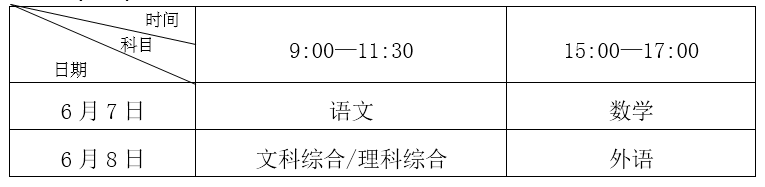 (七)全国统考于6月7日开始举行,具体安排如下: