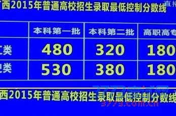 广西高考分数线公布!昨天(6月22日)上午11时,广西招生考试院召开2015年普通高校招生录取最低控制分数线新闻发布会,通报2015年广西普通高考情况、评卷情况、分数线划定情况、分数查询方式、录取工作安排等信息。广西高考分数线公布,据悉,今年,广西本科招生人数增加了超过1万人,同时考生总人数减少,尤其复读生大幅减少。受包括以上原因等三个要素变化影响,今年广西划出的录取分数线也有所降低。
