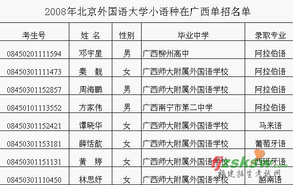[图文]2008年北京外国语大学小语种在广西单招名单