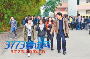 3月16日中午12时,考试结束,在考场外等候3个小时的家长和考生们有说有笑地离开考场。见习记者 邹财麟摄