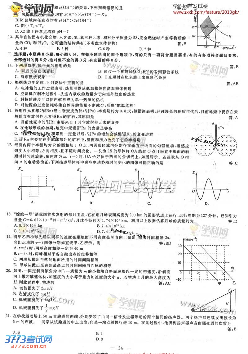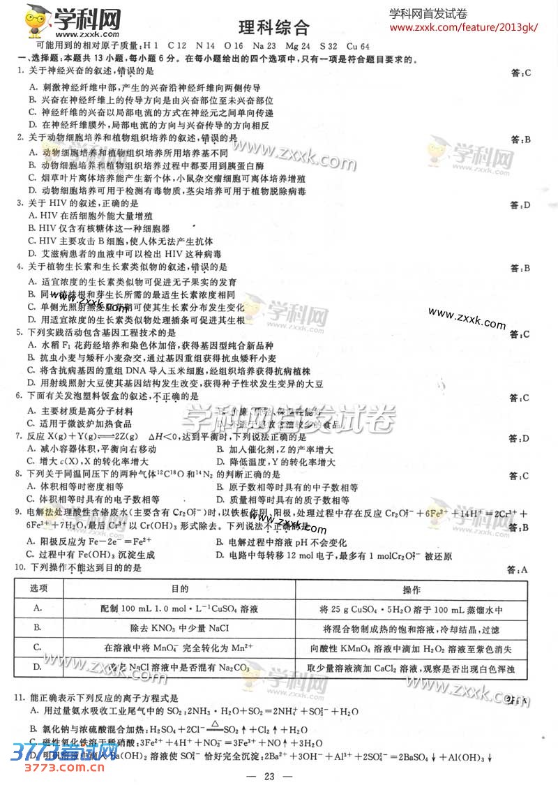 [组图]2013广西高考理综试题及答案