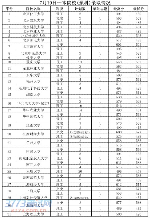 [组图]2014年7月19日贵州一本院校预科录取分数线情况