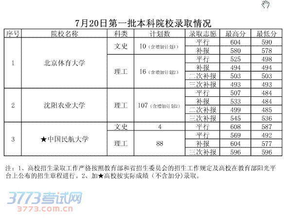 [图文]2014年7月20日贵州高考一本院校录取分数线